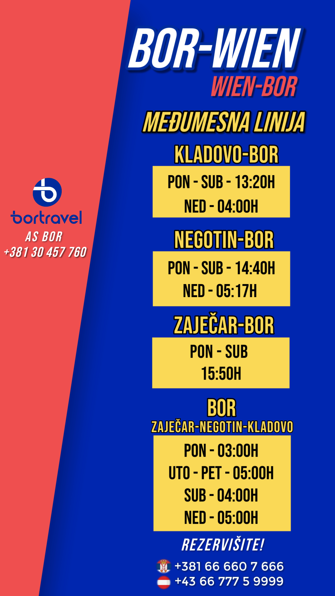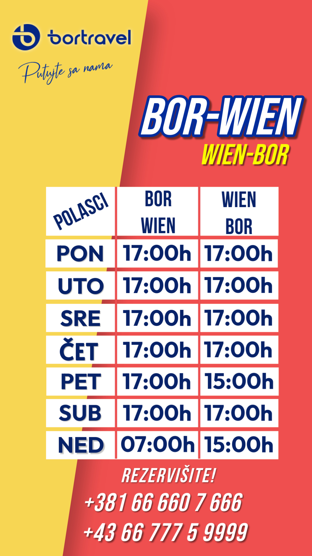 Bortravel pruža uslugu prevoza putnika na relaciji Bor – Beč (Wien)